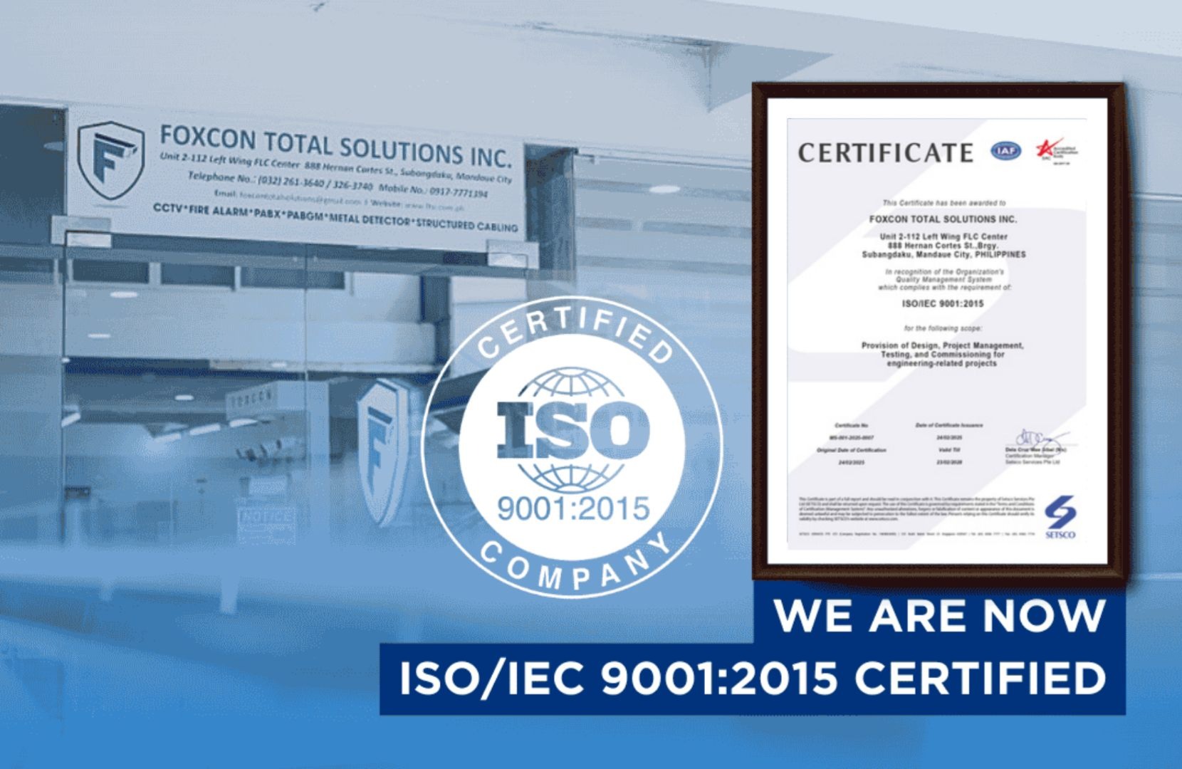 Foxcon Total Solutions, Inc.: A Trusted System Integrator in the Philippines Achieves ISO 9001:2015 Certification